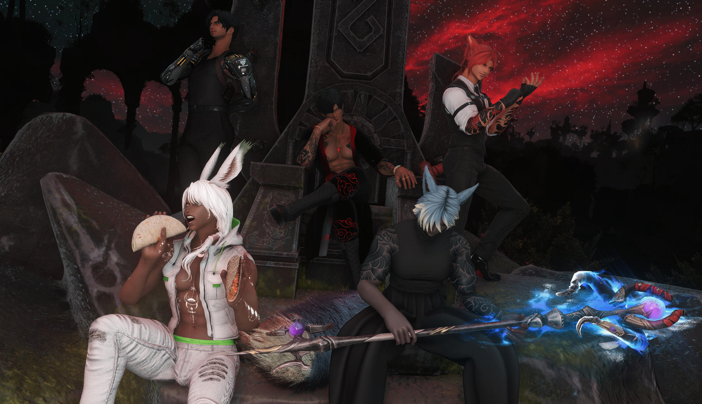 Blitzball enthusiast (Go Barracudas!), lover of all thing musicals, and Jecht of all trades. My love of photography started in high school, and I bring that - and my theatre kid energy - to my particular style of GPose. My goal is to push the limit of what can be done with GPosing and in-game tools with no post processing or editing (ok, maybe some glamour mods), and sharing what I find.My shots capture moments - not just characters. Among my gallery, you'll find my favorite parts of Eorzea - my beautiful muse of a wife, my friends and teammates, and my dog, Smalls.Come join me on the adventure!